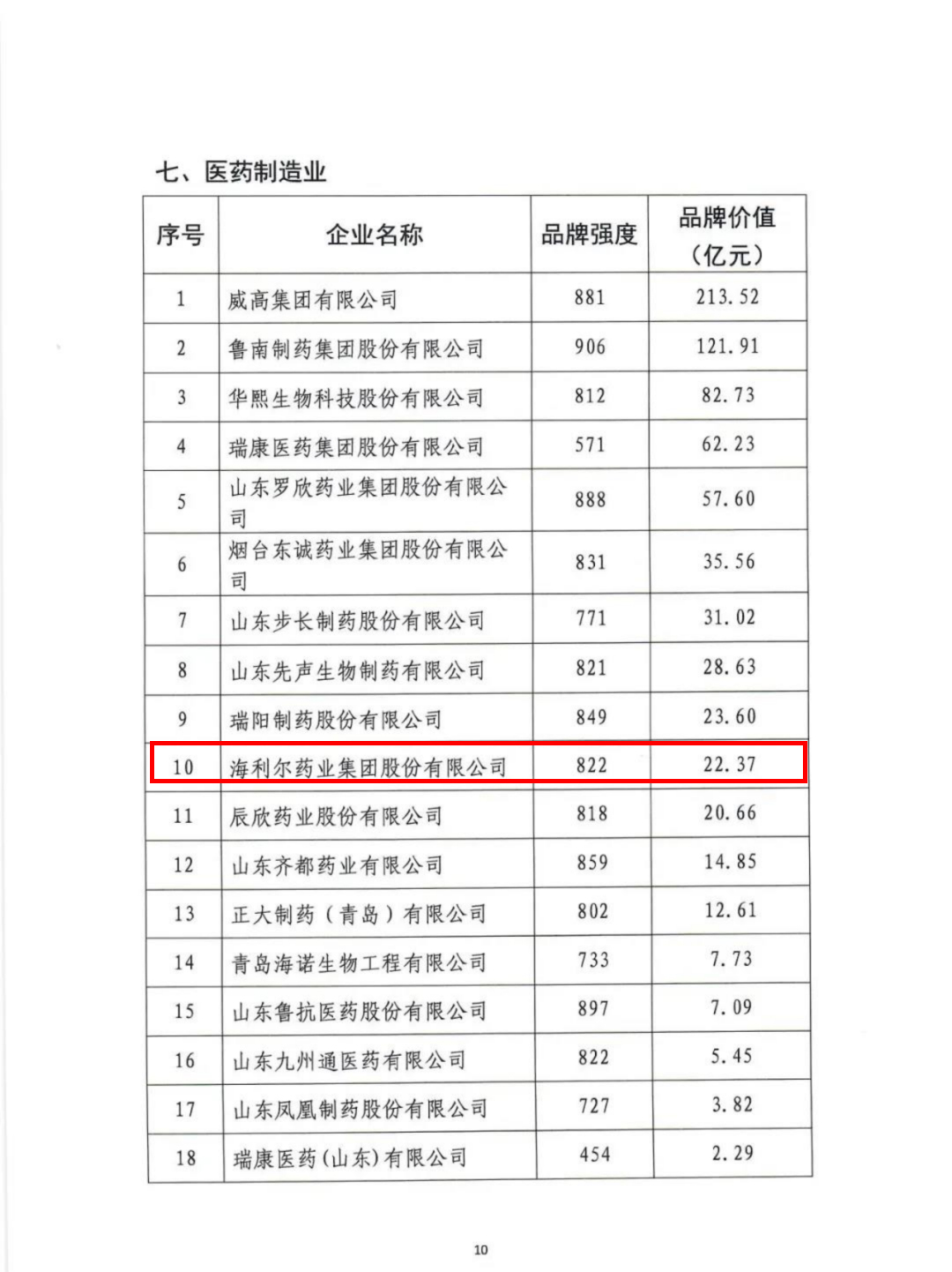 中国品牌建设促进会和山东省品牌建设促进会围绕我省重点行业,按照企业自愿、第三方评价的原则,使用相关国际品牌价值评价方法和各行业品牌价值评价国家标准,根据企业提供的财务数据和各项综合指标,进行了品牌价值评价,最终推出了2021山东省重点行业品牌价值强榜单。MK官方网页版股份有限公司以22.37亿元品牌价值入选医药制造行业榜单第十名!