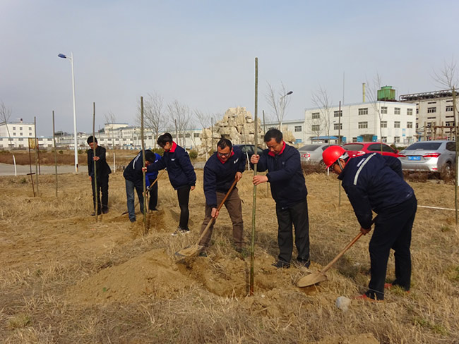 自进入3月份以来,干部员工利用班前班后时间,在车间周围、厂内干道两旁,厂前办公区等地方,植树210棵。两年来累计植树500余棵。